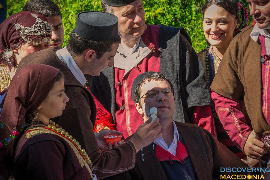 In front of the “Upija” fountain, one of the friends shaves the groom – a symbol of separation of the boy from his parents and a transition to adulthood. Then, from the groom’s house, an entourage of over 50 in-laws goes to the bride’s house. The entourage is led by the bajraktar (flag bearer) and his friends on horses. Walking slowly before the entourage, the horses are one of the main attractions. After the arrival of the in-laws, the bride looks at the groom through her ring: “Through this ring I look at you, welcome me to your heart”.